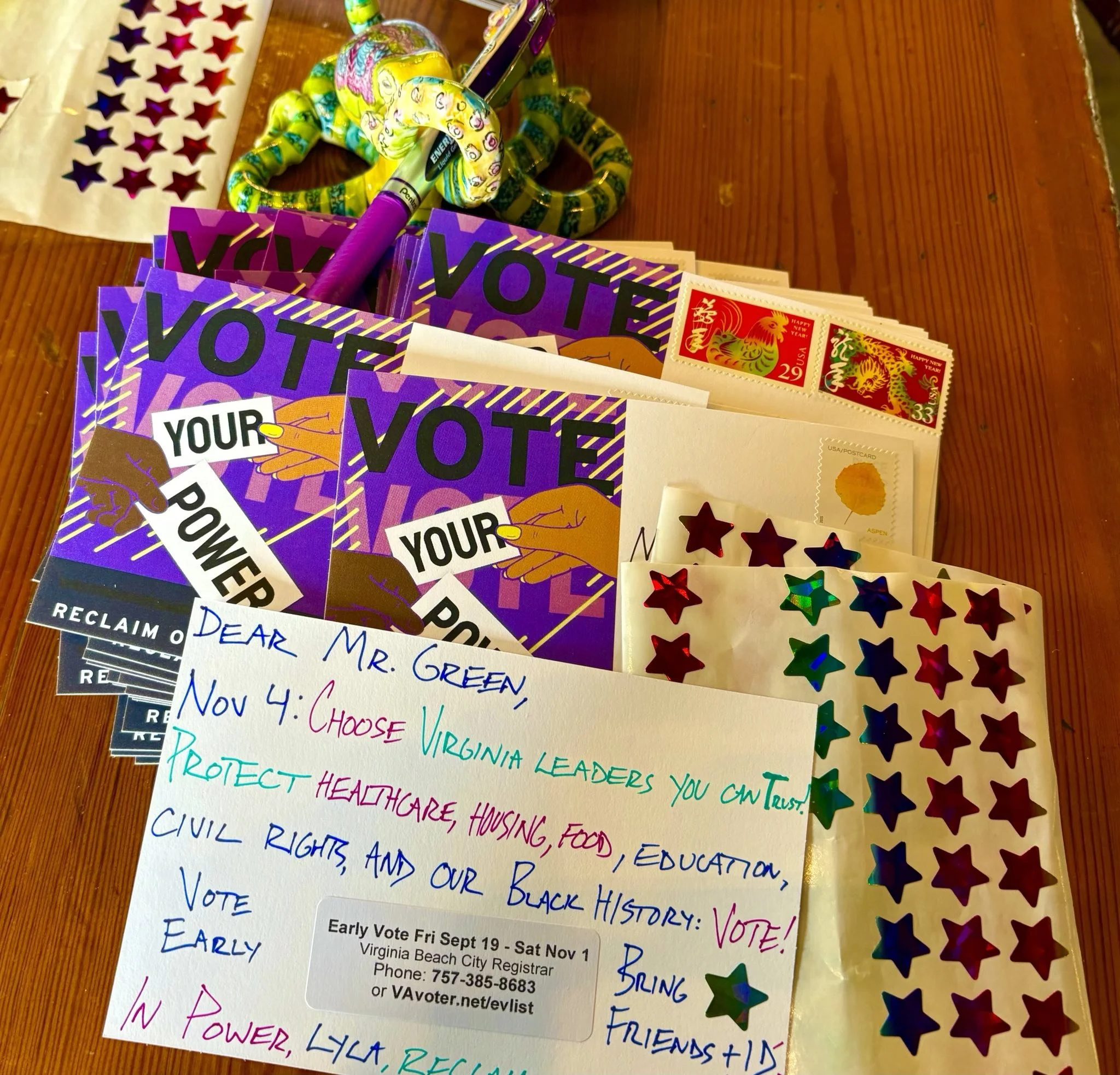 We write postcards to register voters and encourage them to vote. Wherever you live, you can help protect our freedoms.